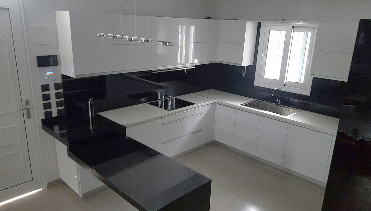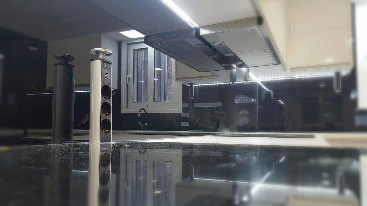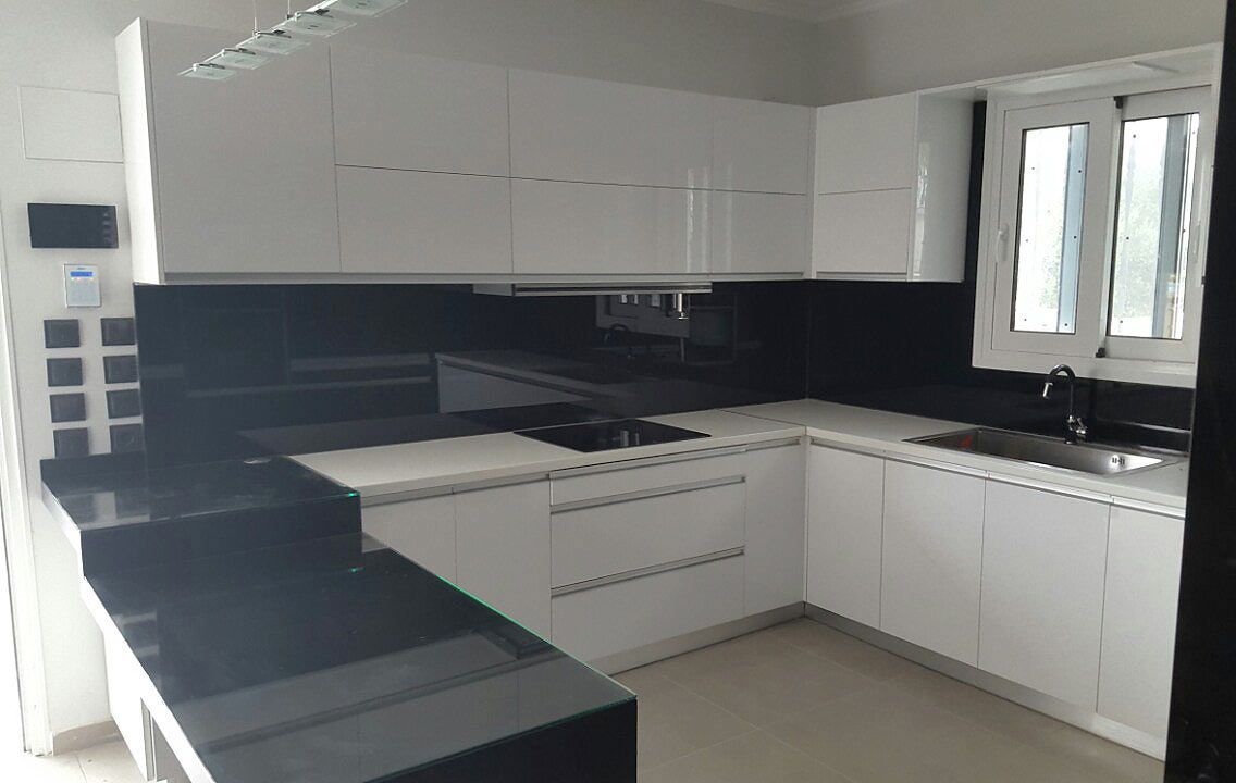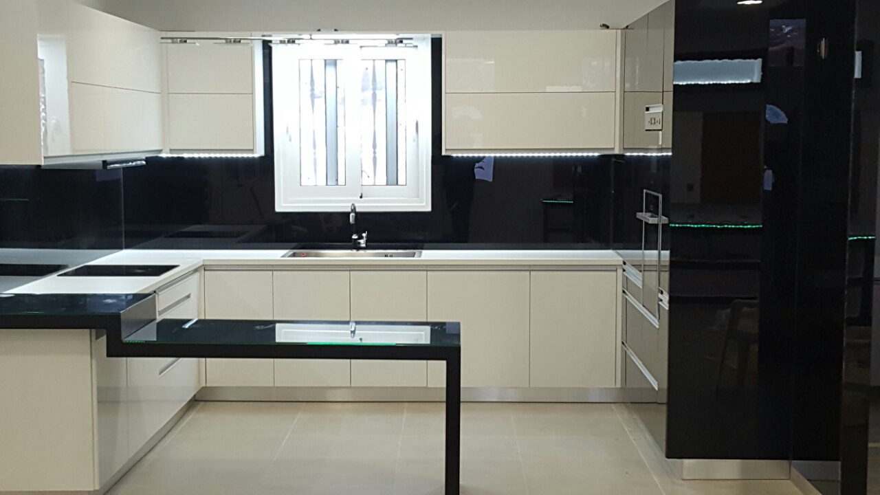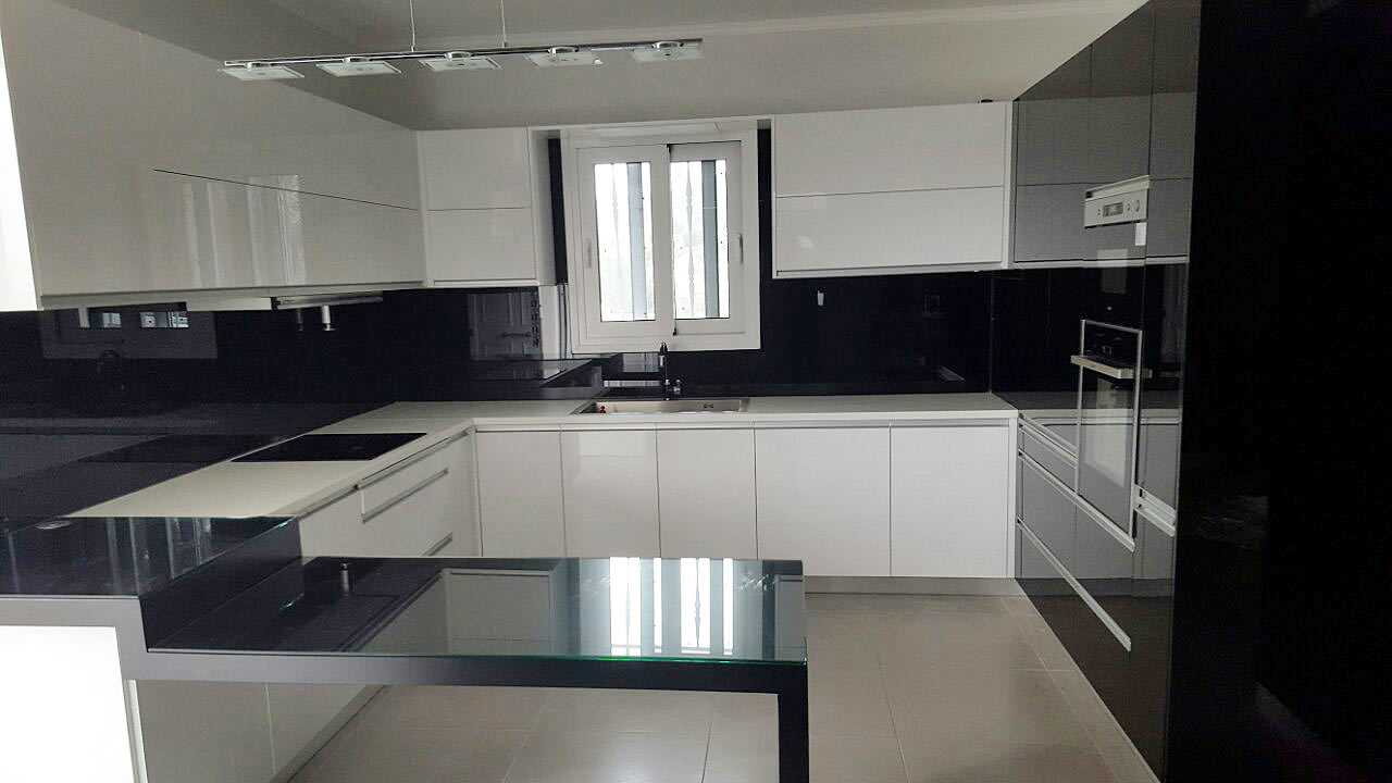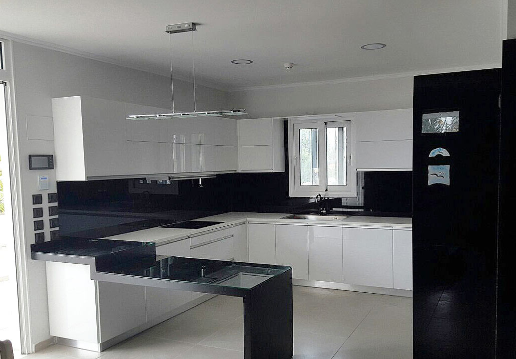 Στην παρακάτω νέα Ανακαίνιση κουζίνας δόθηκε ιδιαίτερη προσοχή στο σύγχρονο και λιτό στυλ. Υπάρχουν νέες καινοτομίες όπως οι βυθιζόμενες πρίζες πάνω και κάτω από τον πάγκο της κουζίνας. Με αυτόν τον τρόπο, δηλαδή την απόκρυψη των πολύ-πριζων, επιτυγχάνουμε μεγάλη εξοικονόμηση χώρου. Επίσης συμβάλουμε στο λιτό στυλ που επιβάλλει μεγάλες λείες και καθαρές επιφάνειες.
