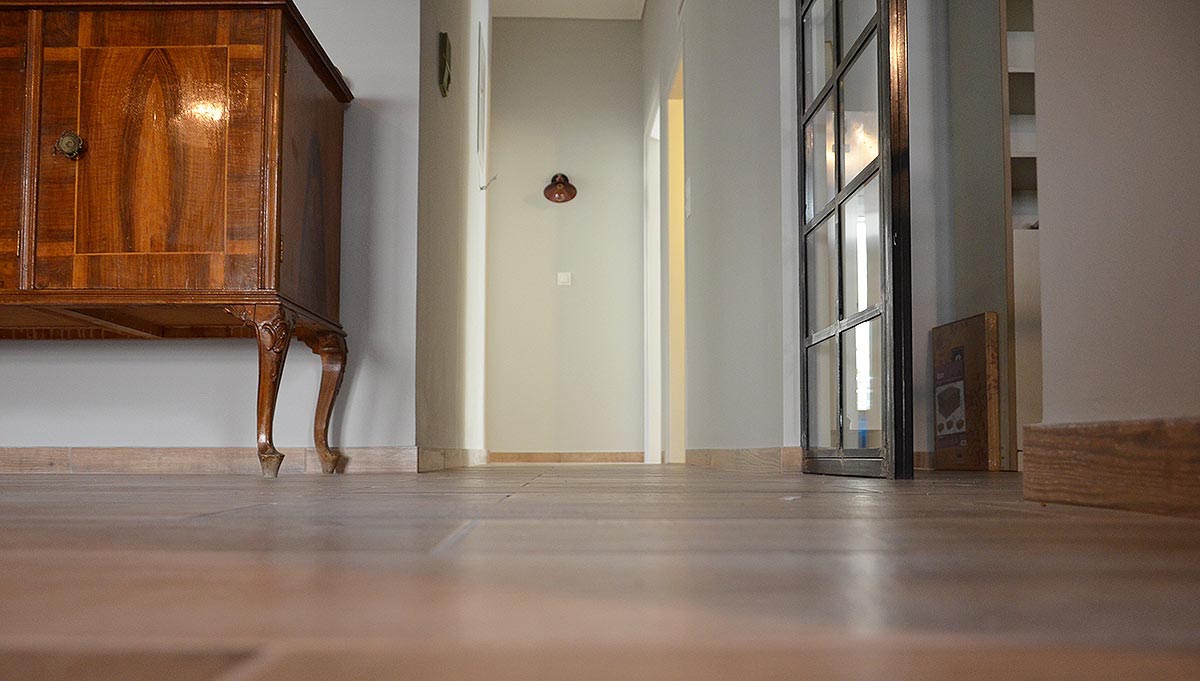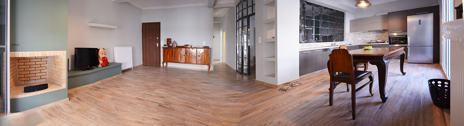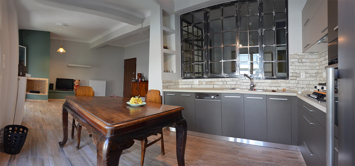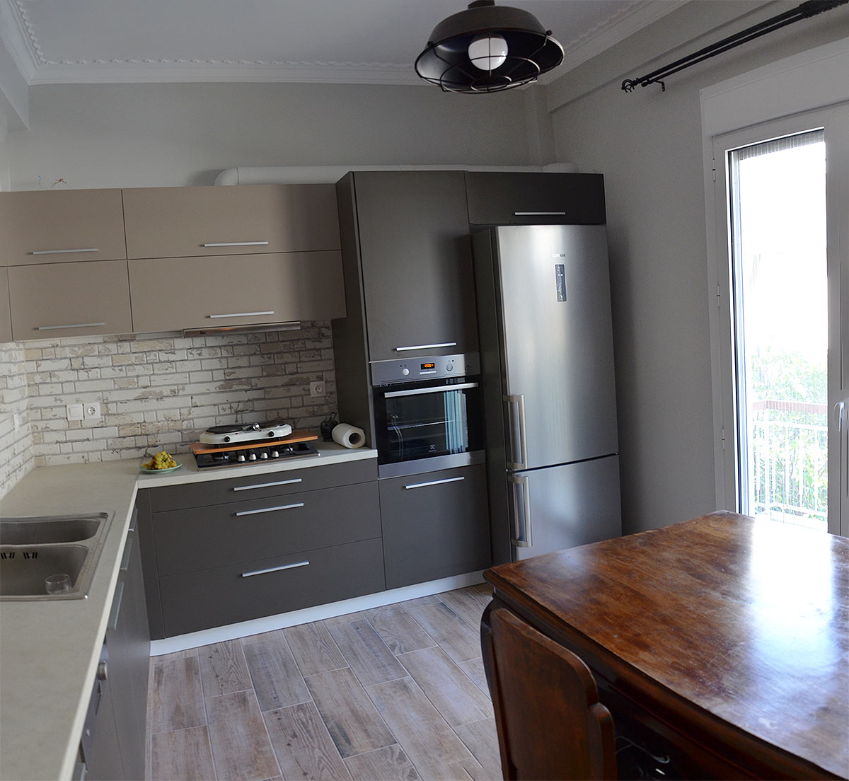 Το διαμέρισμα ήταν δεκαετίας τουλάχιστον 1980 και ο χώρος βρισκόταν σε πολύ άσχημη κατάσταση όπως φαίνεται από τις φωτογραφίες Πριν. Η πλήρης ανακαίνιση περιέλαβε τους εξής τομείς:
