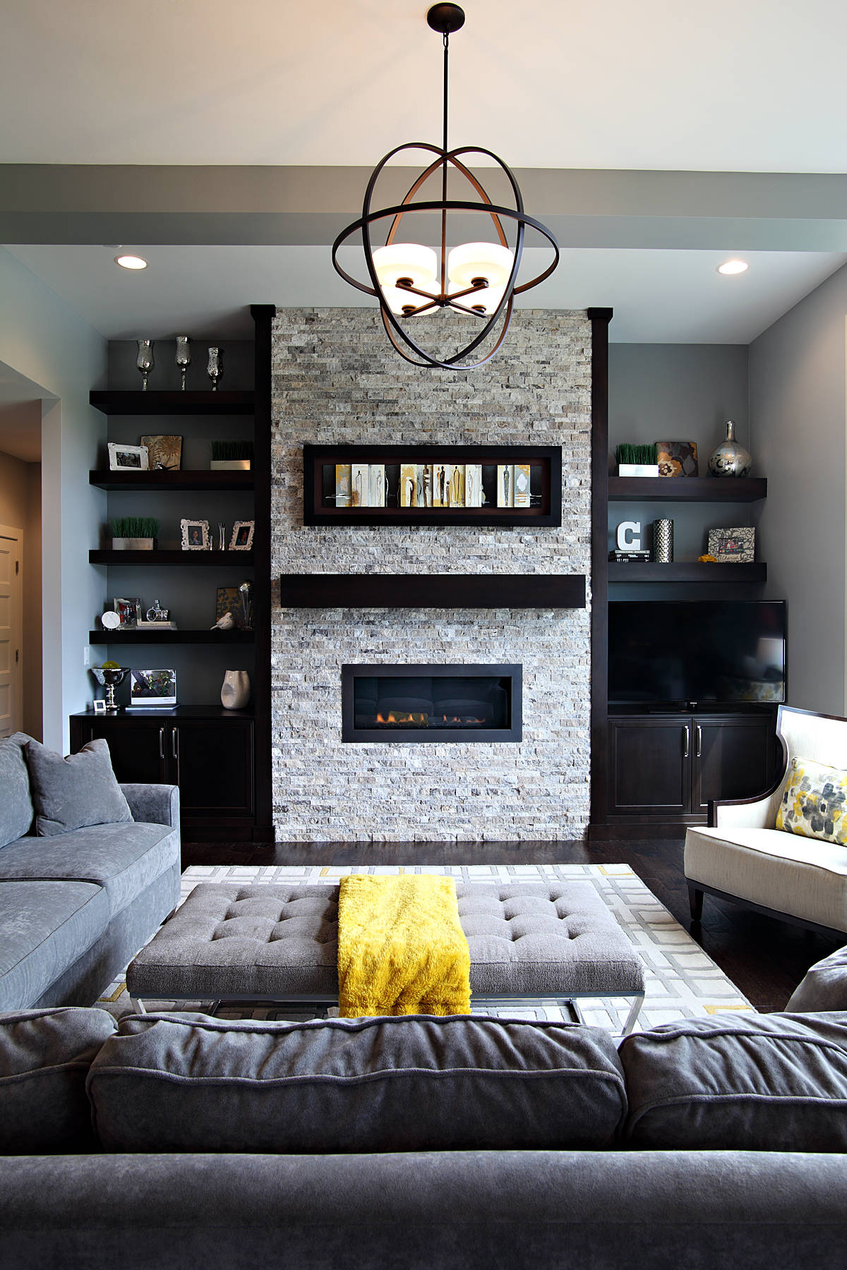 Η προσοχή του χώρου συνήθως επικεντρώνεται σε αντικείμενα όπως η τηλεόραση το τζάκι, οπότε αυτό θα πρέπει να είναι το σημείο εκκίνησης. Εάν έχετε τζάκι, δεν θα έχετε πάρα πολλές επιλογές σχετικά με τη διαμόρφωση του δωματίου. Αλλά μπορείτε να αναδιατάξετε τα έπιπλα τουλάχιστον.